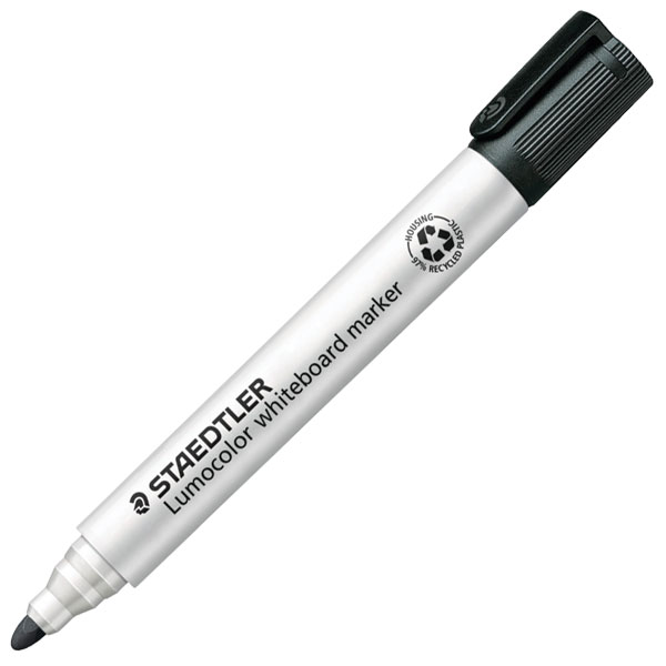 Staedtler 351 Lumocolor whiteboard marker can be dry-wiped from whiteboards and surfaces like glass and porcelain without leaving a trace