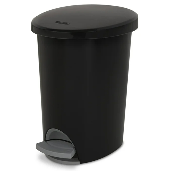 The Step-on wastebasket provides convenient step-on access for hands-free opening.Slim, oval design ideal for use in narrow spaces9.8LOvalBlack