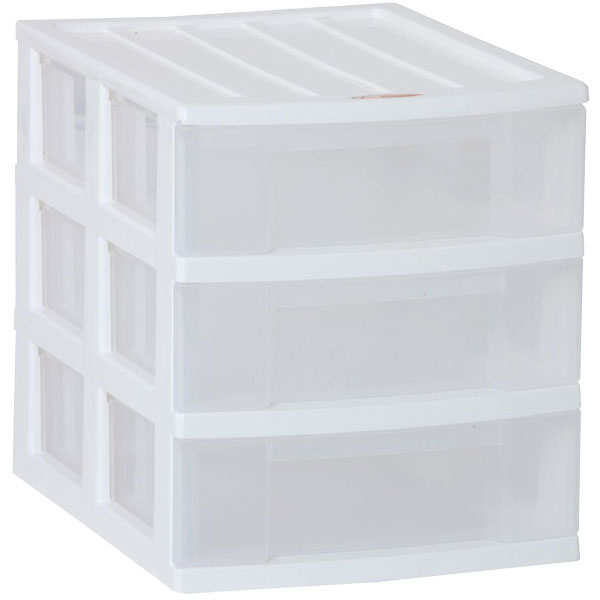 Three drawer clear plastic unit.