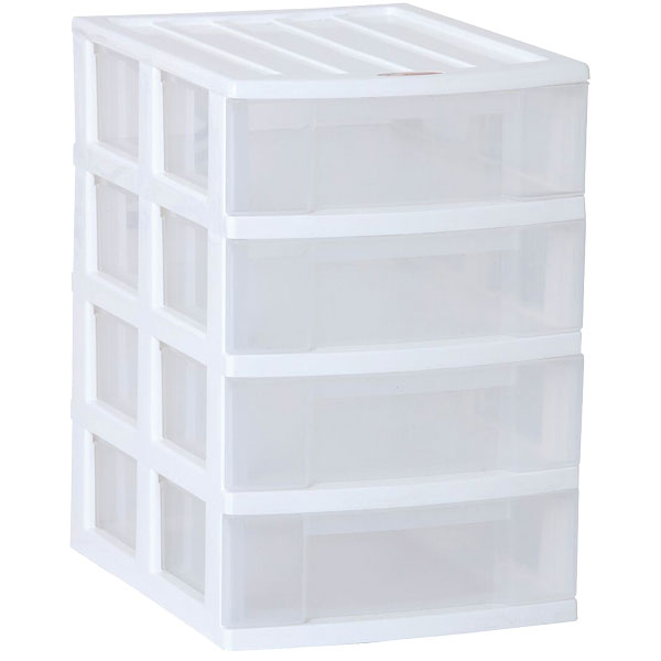 Four drawer clear plastic unit.