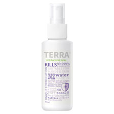 TERRA Anti-bacterial spray kills 99.9% of bacteria.