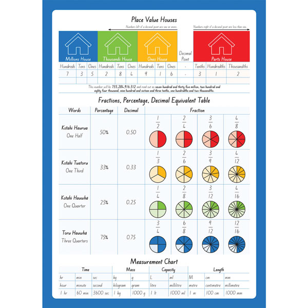 Equivalence charts for numbers, word, decimal and percentage