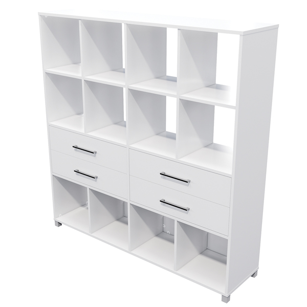 ZEALAND CUBBY HOLE BOOKCASE 12 CUBE 4 DRAWERS W1600 X D400 X H1650MM WHITE